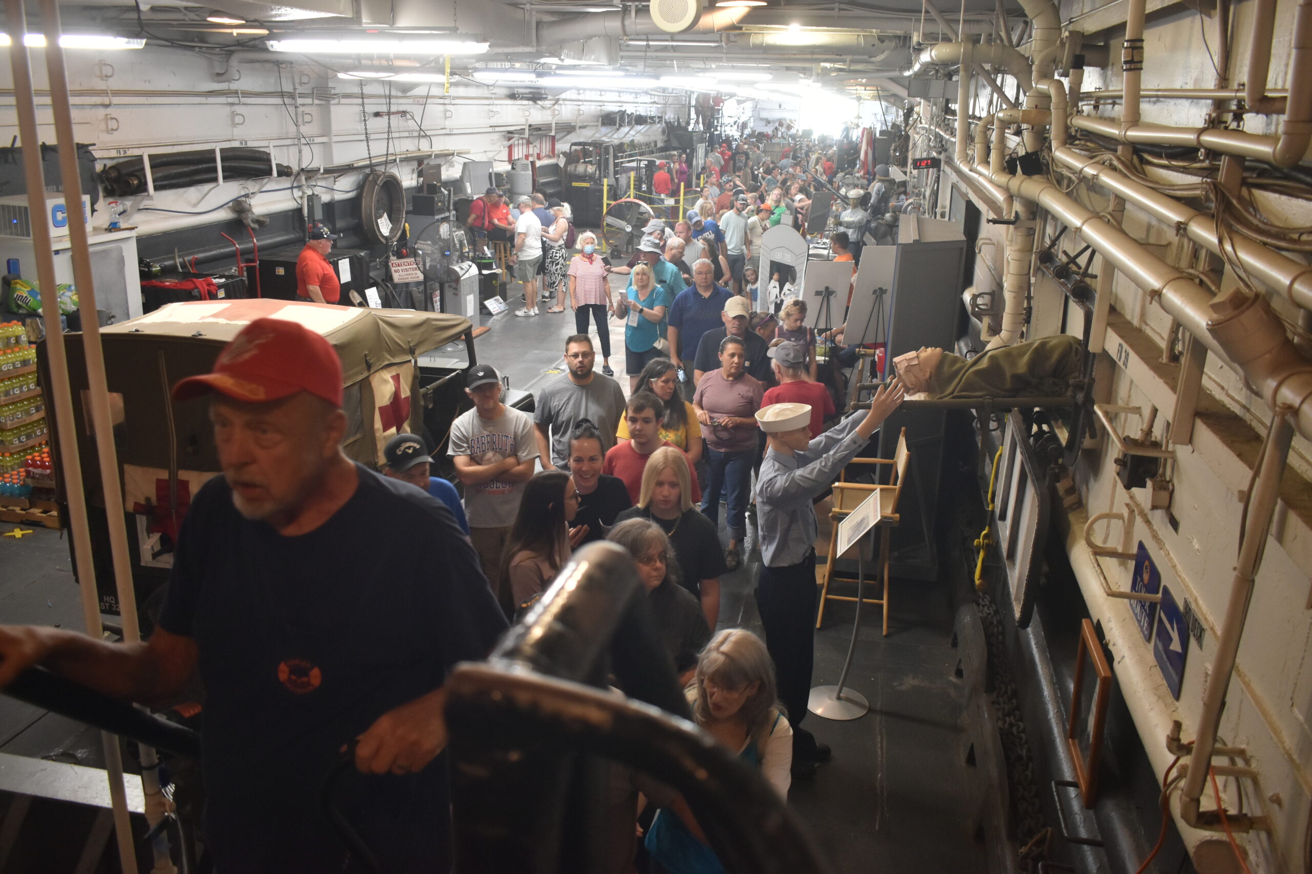 The ship is 328 feet long — longer than a football field — and all of its decks are open for exploring, including the tank deck, which could hold 20 Sherman tanks.